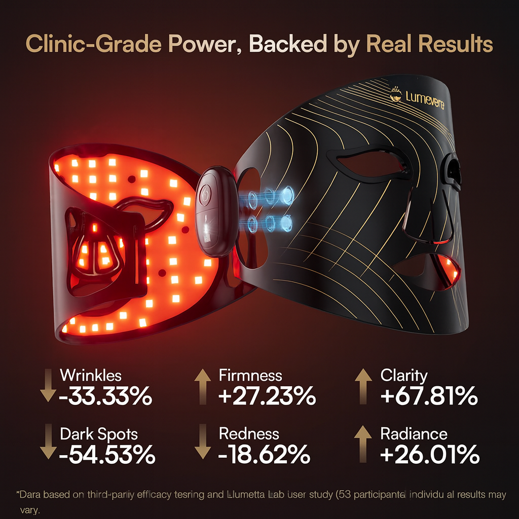 Lumevera Wireless is backed by trusted certifications including FDA, CE, RoHS, FCC, and REACH—ensuring medical-grade safety and performance in your daily skincare.